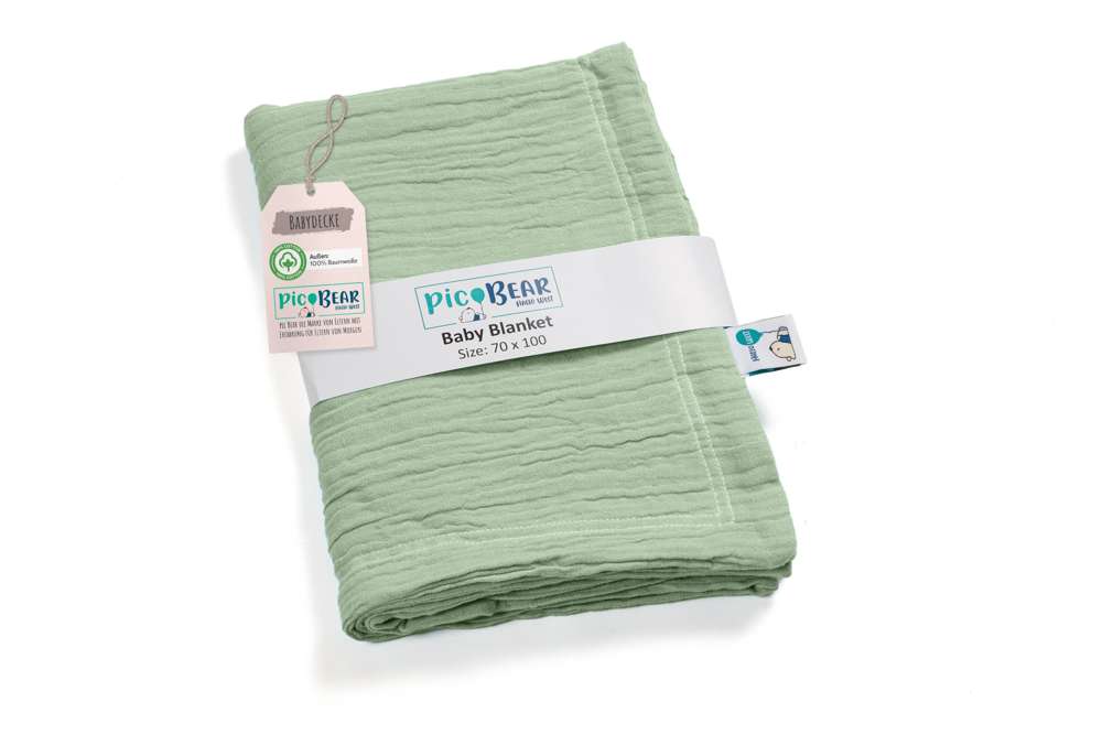 pic Bear Babydecke Kuscheldecke 70x100cm, grayed jade Musselin