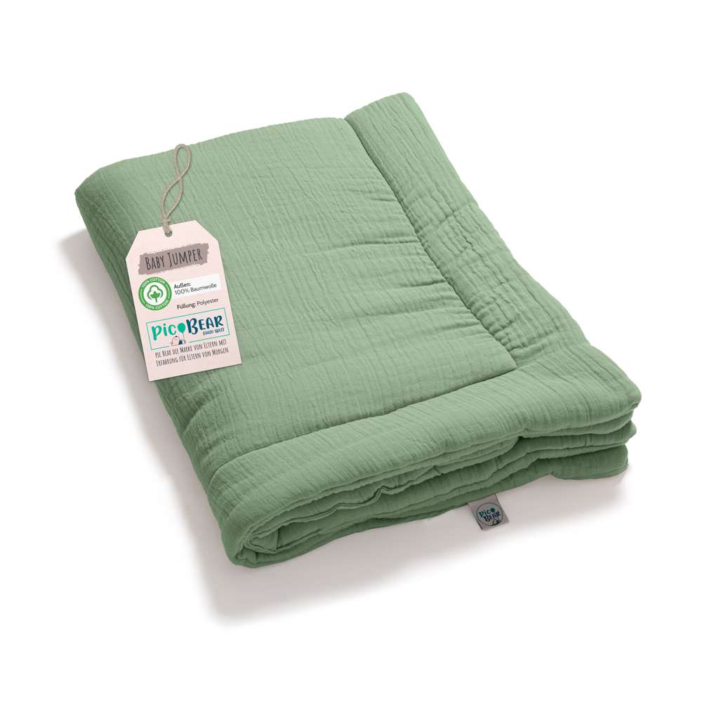 pic Bear Krabbeldecke Musselin, 135 cm x 95 cm, grayed jade Musselin