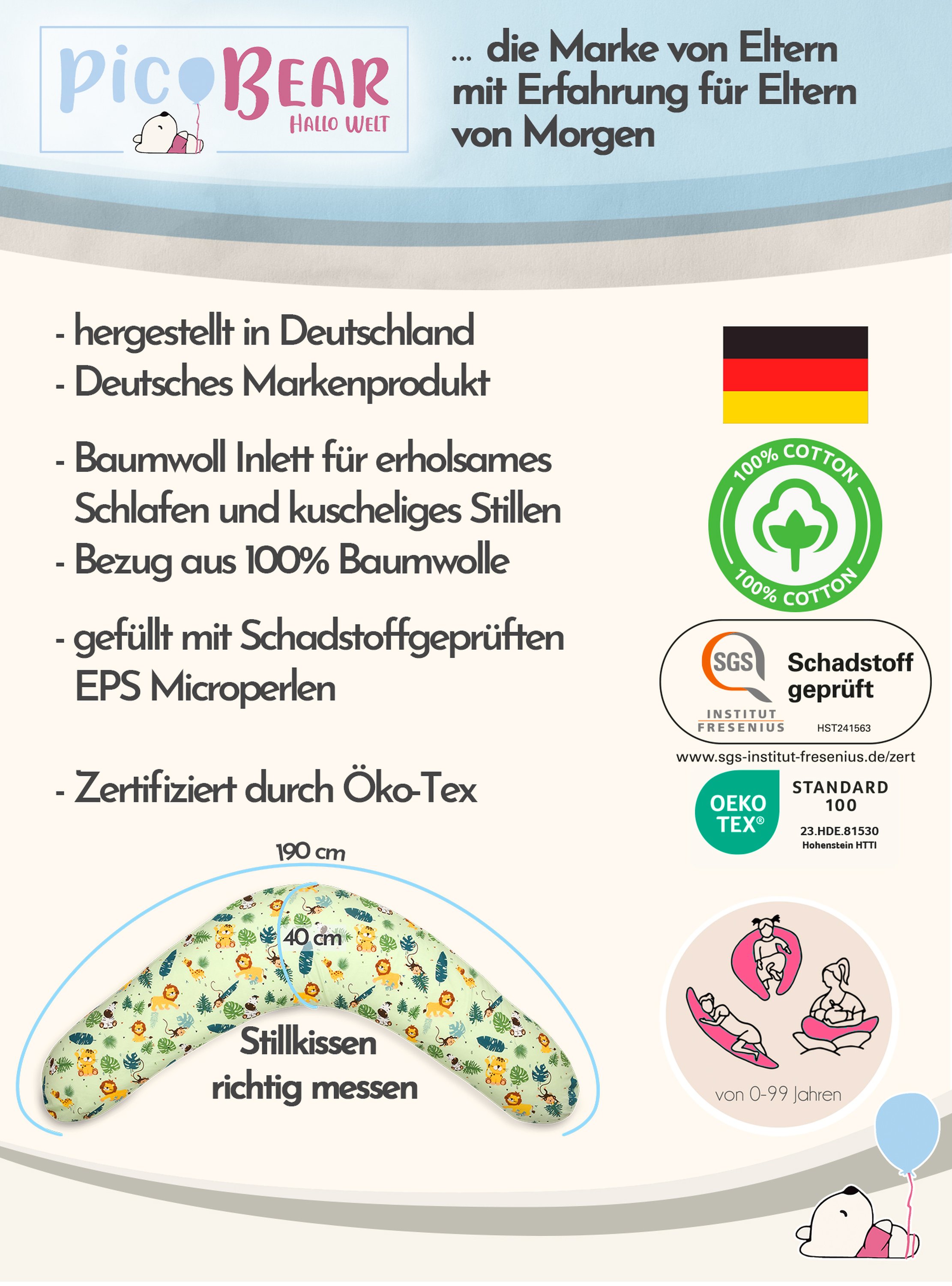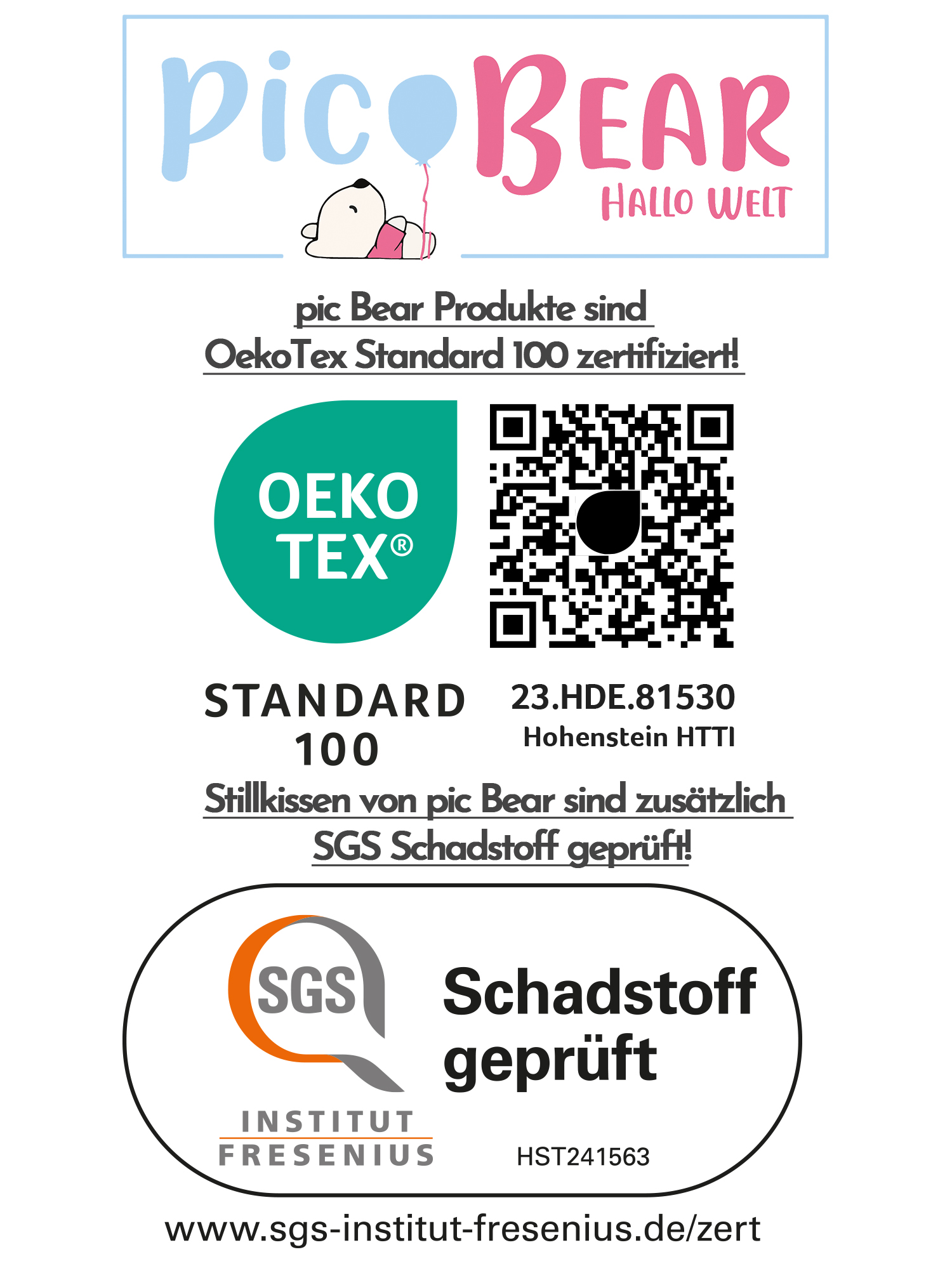 Das Marken-Stillkissen von gws Family ist von höchster Qualität und wird den Ansprüchen jeder fürsorglichen Mutter gerecht. Das Inlett ist aus 100% geschmeidiger Baumwolle gefertigt und mit 42 Litern EPS-Mikroperlen gefüllt, die selbstverständlich Schadstoffgeprüft (SGS Fresenius) wurden. Ausserdem ist das Kissen OEKO-TEX® STANDARD 100 zertifiziert)