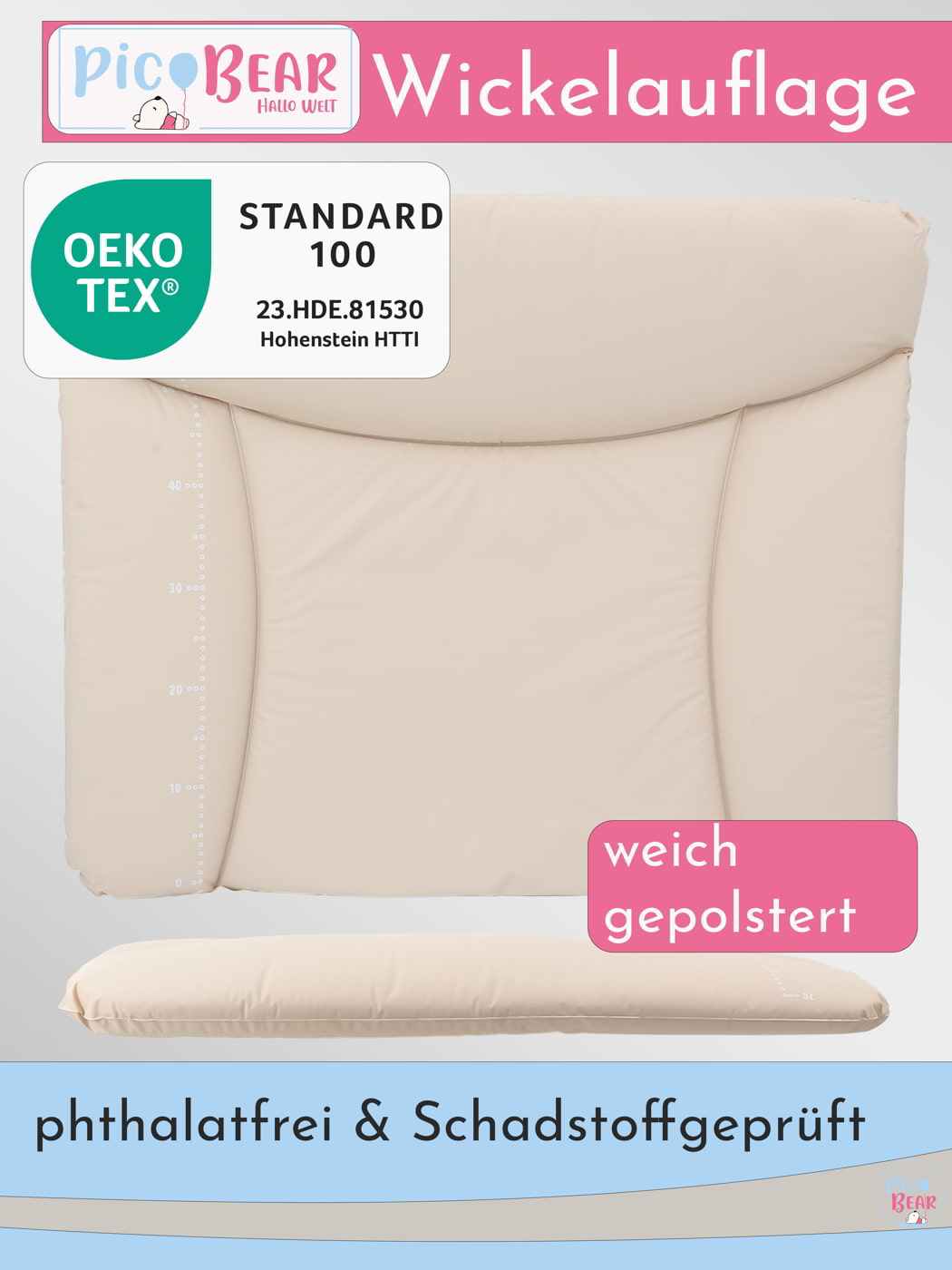 OEKO-TEX® STANDARD 100 | Wasserdicht und weichDer Bezug ist vollkommen wasserdicht | WeichmacherfreiDie Wickelauflage besteht aus 100% | Made in EUDie Herstellung erfolgt in der EU unter |
