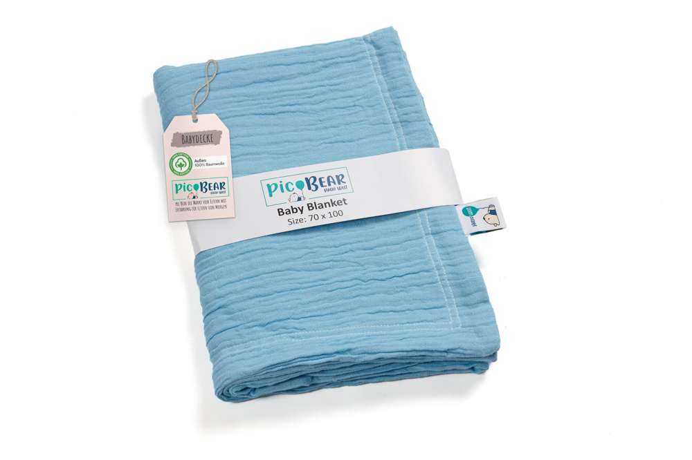 pic Bear Babydecke Kuscheldecke 70x100cm, airy blue Musselin