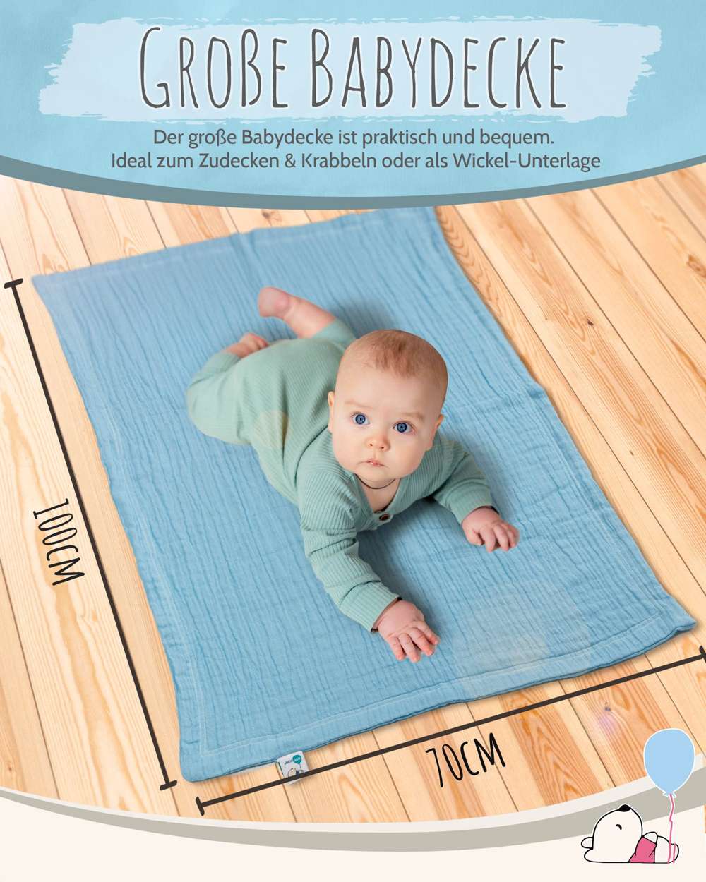 - Aus 100% Musselin-Baumwolle: Unsere Babydecke bietet eine sanfte Berührung, perfekt für zarte Babyhaut und sorgt für wohltuende Kuschelmomente jeden Tag.