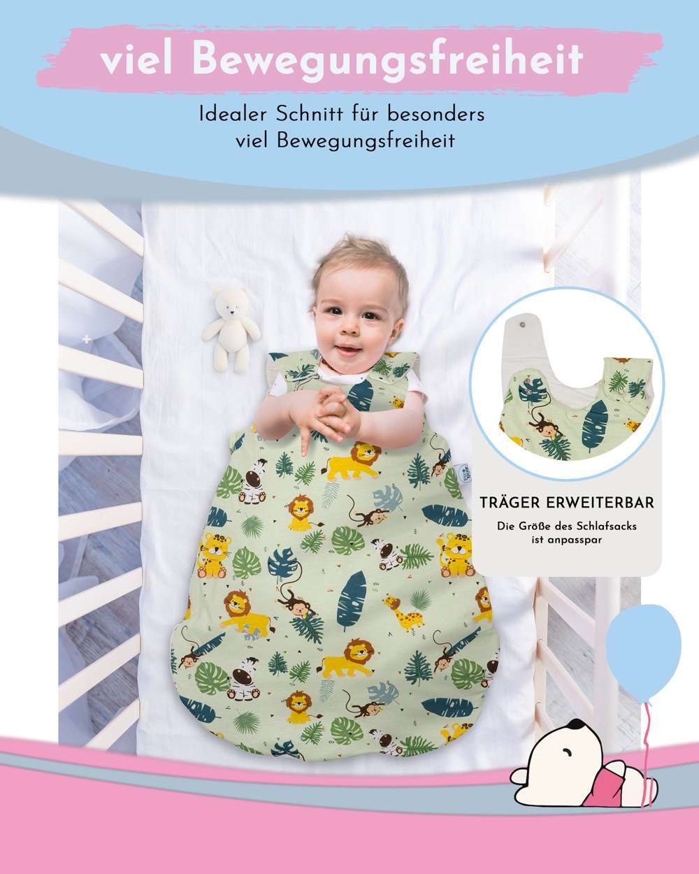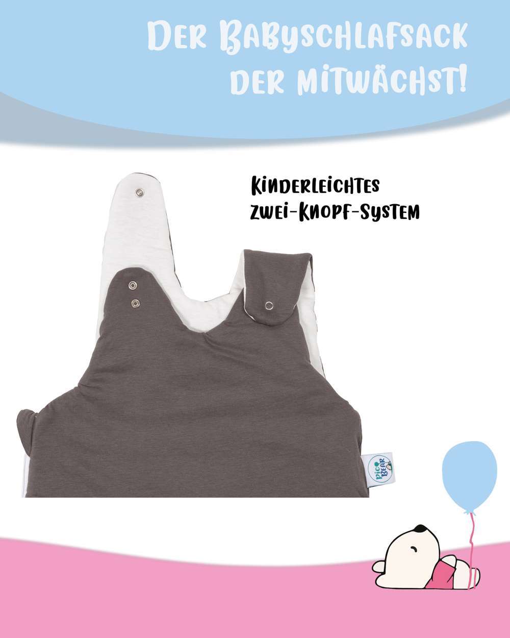 Welcher Babyschlafsack für Neugeborene? Dank der vielseitigen Größenanpassung ist der pic Bear Babyschlafsack eine ausgezeichnete Wahl für Neugeborene. Das Zwei-Knopfsystem ermöglicht eine perfekte Anpassung an die Größe Ihres Babys, sodass es sich von Anfang an wohl und geborgen fühlt.