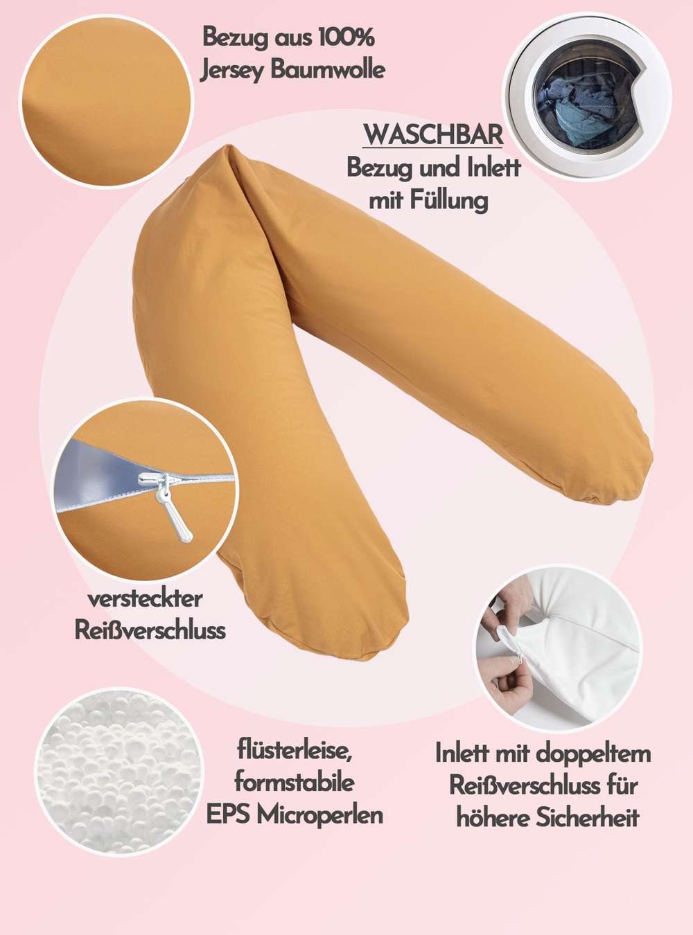 - GEPRÜFTE QUALITÄT - Das Schwangerschaftskissen ist von höchster Qualität und wird den Ansprüchen jeder fürsorglichen Mutter gerecht. Gefüllt ist das Kisssen mit 45 Litern EPS-Mikroperlen, die selbstverständlich vom TüV Saar schadstoffgeprüft wurden.
