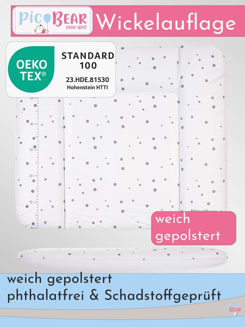 OEKO-TEX® STANDARD 100 | Wasserdicht und weichDer Bezug ist vollkommen wasserdicht | WeichmacherfreiDie Wickelauflage besteht aus 100% | Made in EUDie Herstellung erfolgt in der EU unter |